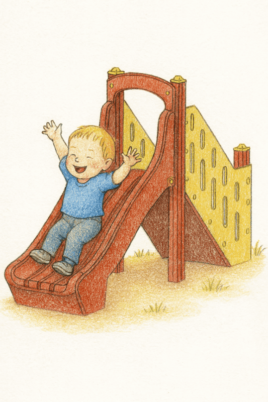 Kleinkindrutsche für die Allerkleinsten – niedrig, sicher, robust.